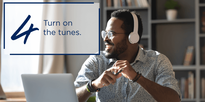 Let's face it, sometimes the pace of the day doesn’t lend itself for extended breaks. Having a crazy busy day and running out of speed? Listening to music is not only a good way to drown out the noise around you, but it's a quick way to increase your energy level and boost your mood. But be careful of your choices. Music that makes you want to get up and dance may not be the best option when trying to focus. Leave those head bangers for your workout and opt for more relaxing sounds for focus.